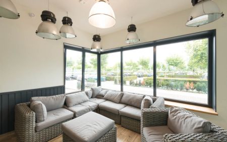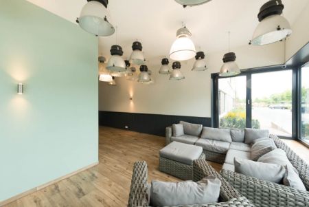 In direkter räumlichen Nähe zu den Arbeits- und Produktionsstätten ist eine hochwertige Arbeitnehmerunterkunft entstanden, die den bis zu 450 Saisonarbeitern ein qualitätsvolles Zuhause auf Zeit schafft.